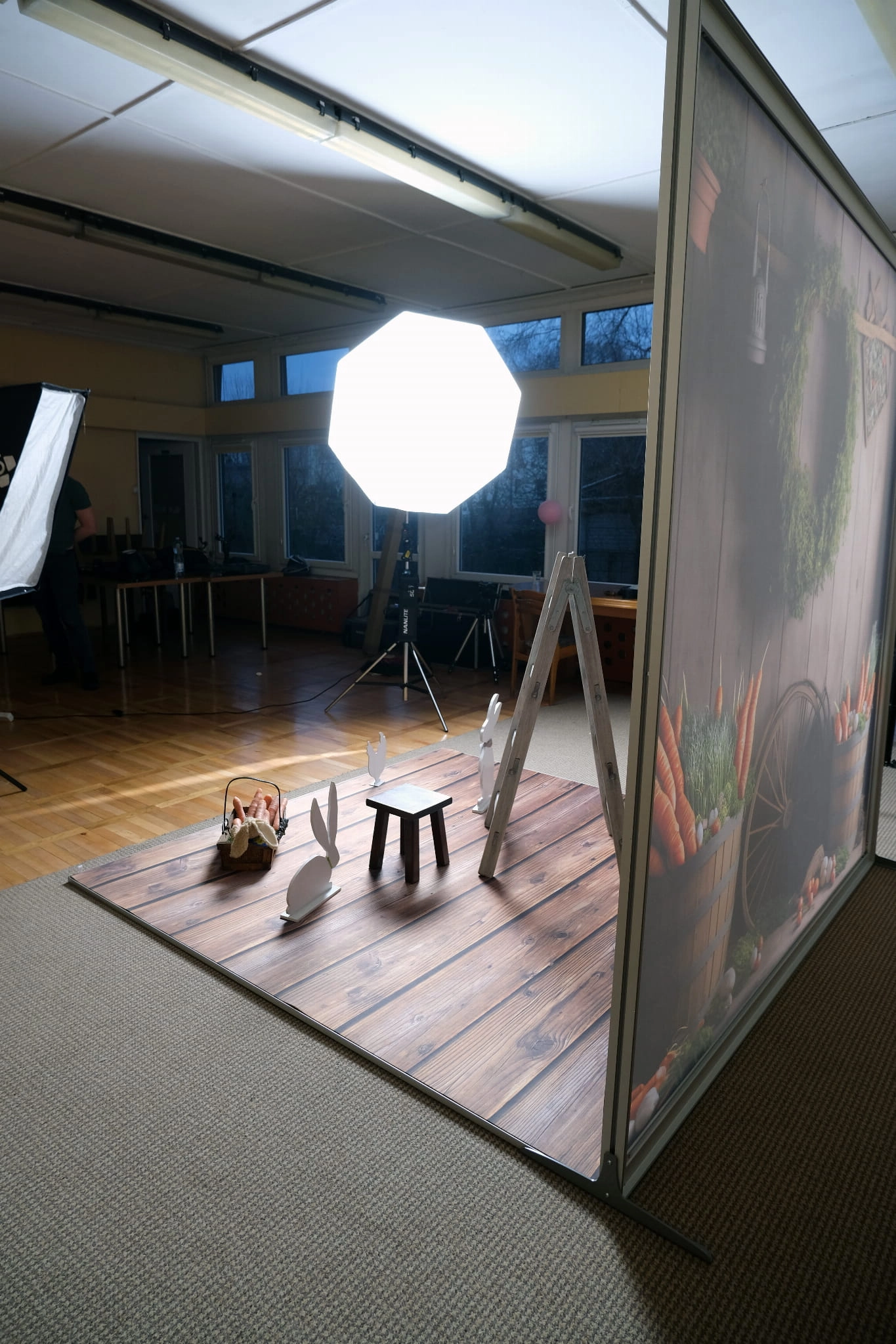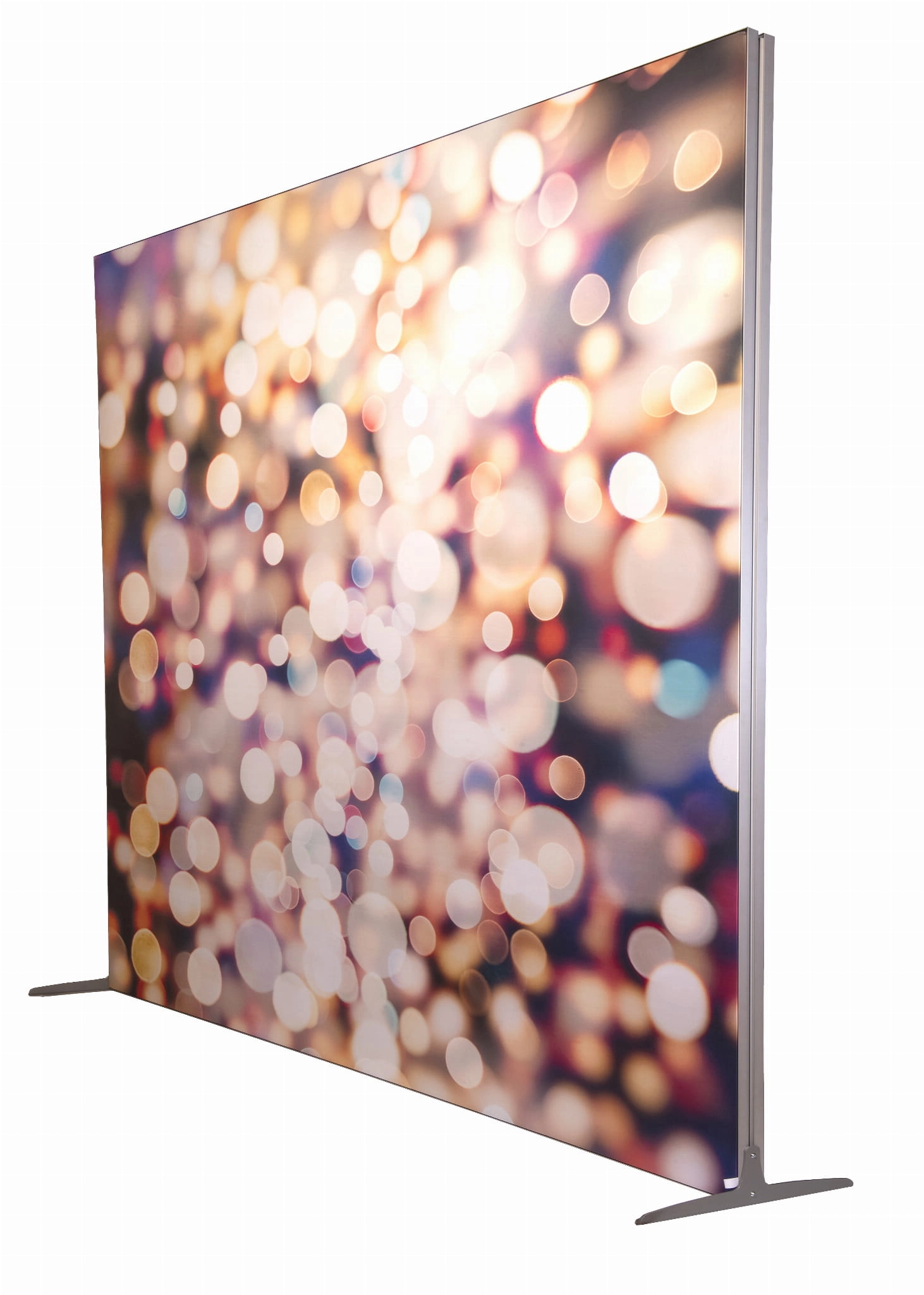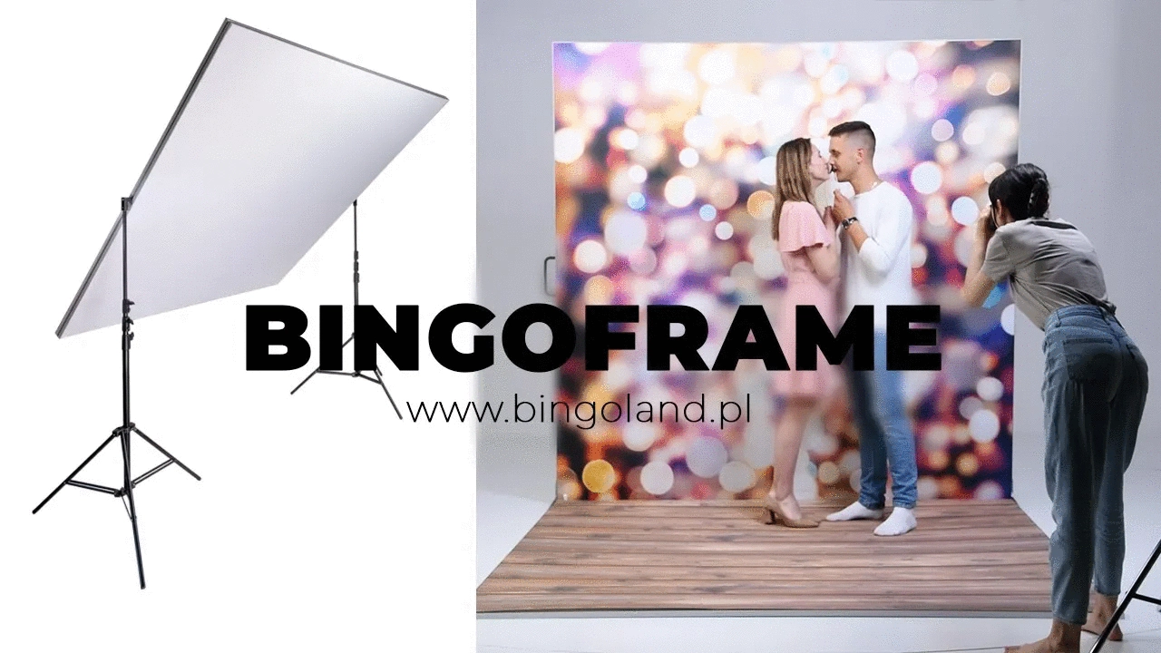 Bingo frame to nowość w naszej ofercie. Rozwiązanie pozwala na montaż teł materiałowych w subtelną ramę. Aluminiową konstrukcję wystarczy kupić jeden raz i cieszyć się łatwą wymianą teł. Naciągnięte grafiki całkowicie pozbywają się zniekształceń tkaniny, w efekcie nie ma żadnych załamań światła. Bingo frame może pełnić również role stołu bezcieniowego, dyfuzora lub czarnego ekranu generującego cień. Przy użyciu dodatkowych akcesoriów można z niego zrobić wolnostojącą ściankę, sufit itd.