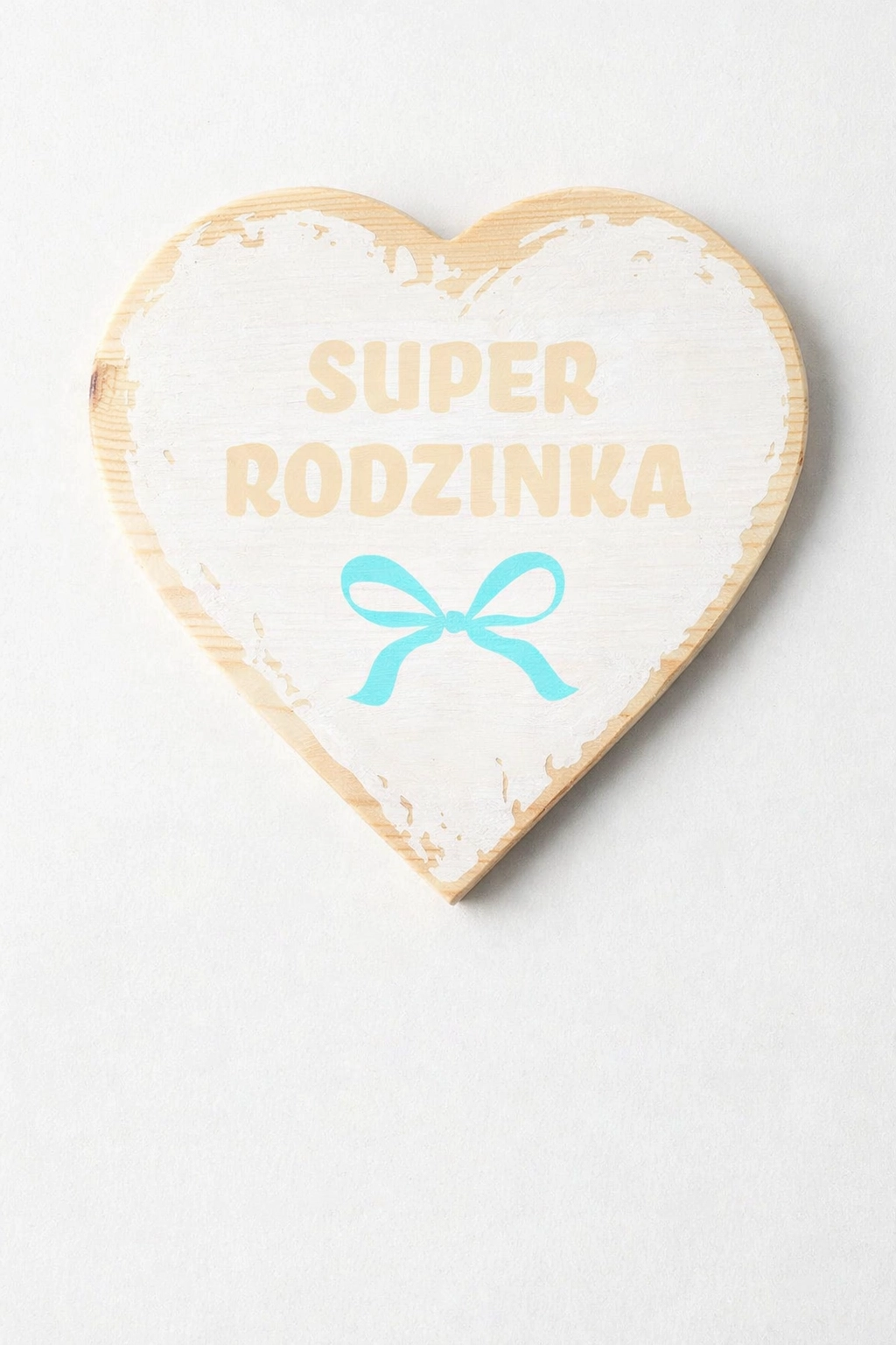 Drewniana Tabliczka Serce – „Super Rodzinka”