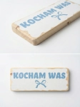 - Wykonanie: Ręcznie malowane białe tło + błękitny napis
