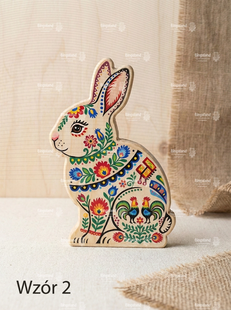 Drewniany zestaw Folk Króliki oraz Skrzypce – Rekwizyt do Sesji Wielkanocnych