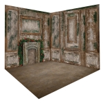 Tło fotograficzne świąteczne , Boże Narodzenie , Tło do zdjęć Świątecznych , wnętrze , kominek , sztukateria , brąz , zieleń.Tło Fotograficzne narożne eleganckie wnętrze.