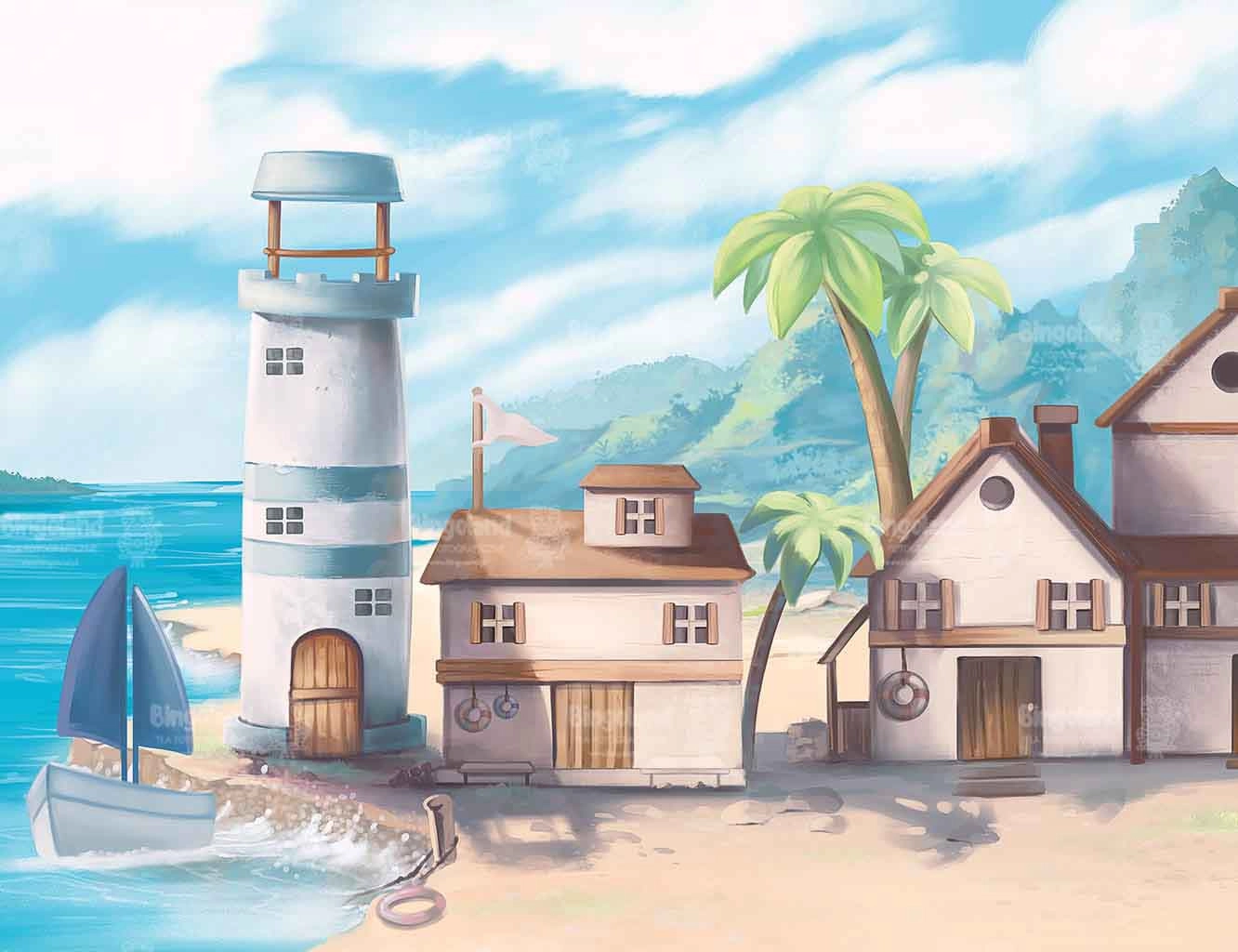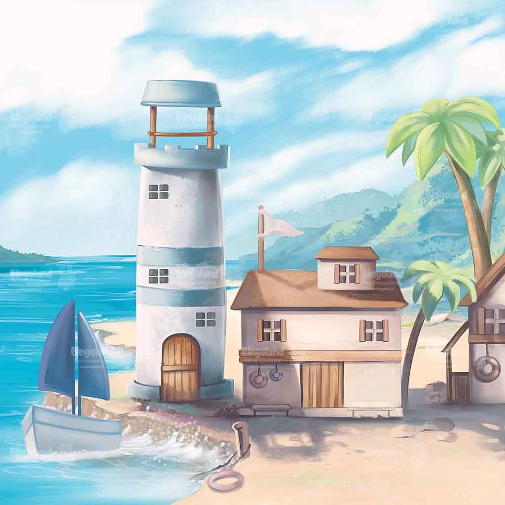 Tło fotograficzne plaża lato morze statek latarnia