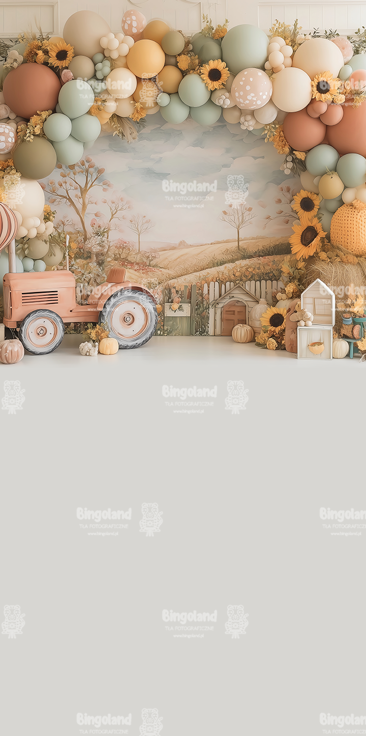 Tło fotograficzne Farma z Balonikami, Słonecznikami i Traktorem – do sesji urodzinowych i przedszkolnych CL 1692
