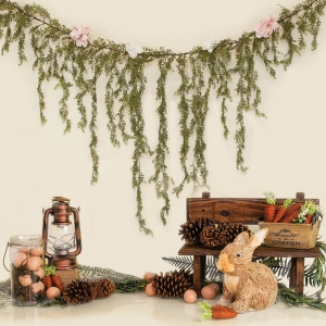 Tło fotograficzne Wielkanoc Wielkanocne, królik , marchewka ,jajka .