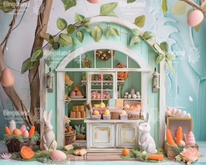 Tło fotograficzne wiosna , wielkanoc , kuchnia , kredens