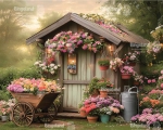 Tło fotograficzne Wielkanoc wiosna chatka domek ogród CL 1591