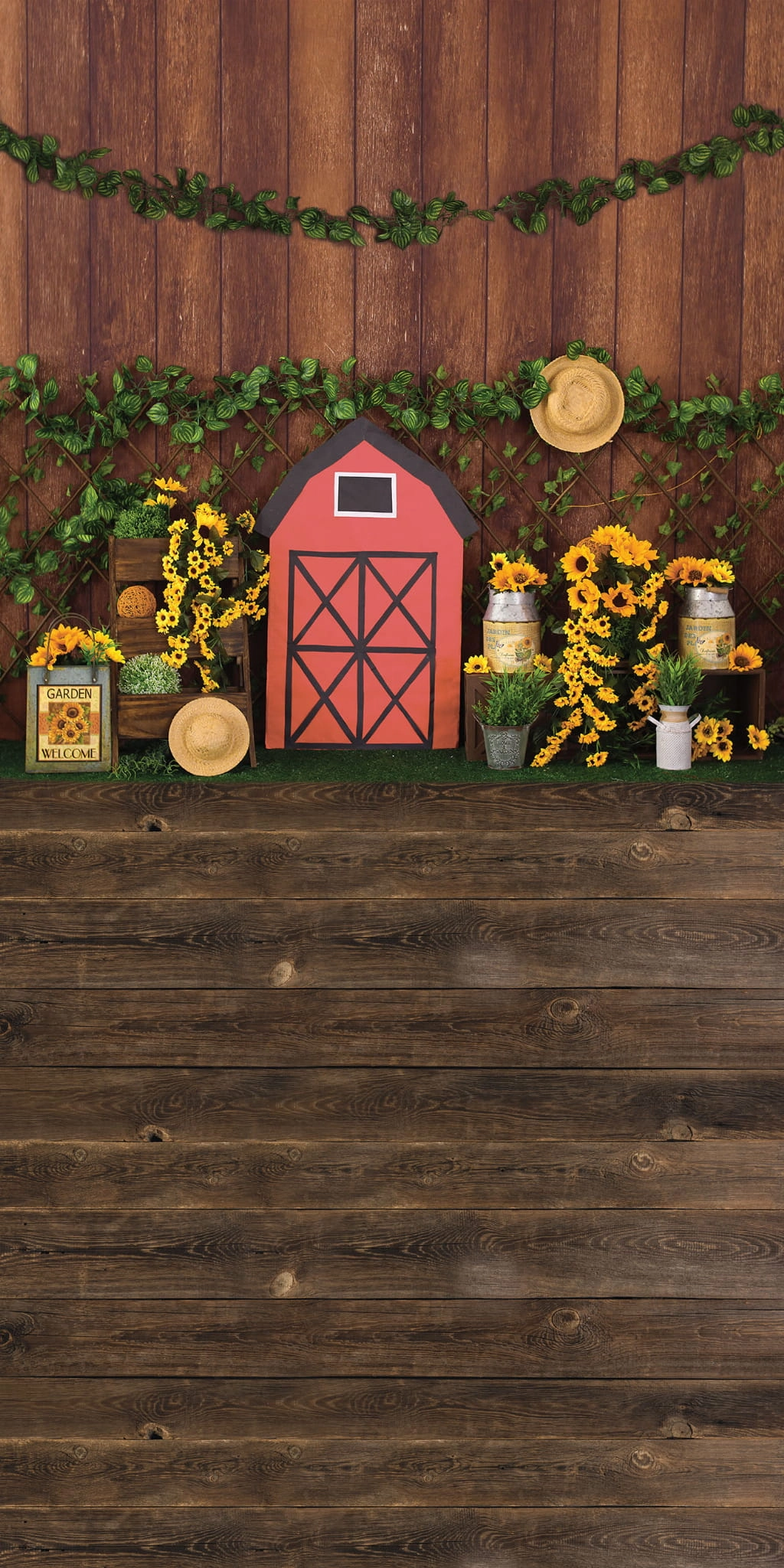 Tło fotograficzne urodziny roczek , farma , słoneczniki , urodzinowe