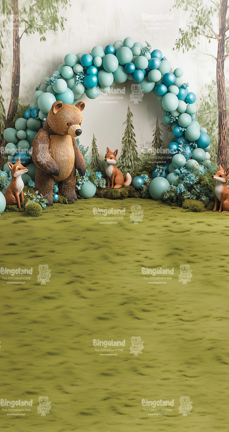 Tło fotograficzne las urodzinowe balony zwierzęta CL 1602