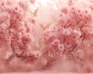 Tło fotograficzne różowe drzewo motyl CL 1380