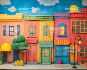 Tło fotograficzne ulica sezamkowa karnawał przedszkole CL 1525