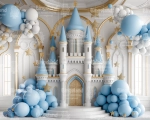 Tło fotograficzne urodzinowe zamek niebieski balony CL 1477