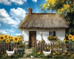 Tło fotograficzne wiosna wieś domek Wielkanoc płotek CL 1606