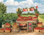 Odkryj wyjątkowe tło fotograficzne przedstawiające malownicze truskawkowe pole z uroczym, rustykalnym stoiskiem pełnym świeżych owoców. Idealne do sesji rodzinnych, dziecięcych, tematycznych oraz sesji produktowych w stylu letnim i wiejskim. Soczyste kolory, naturalne światło i sielska atmosfera sprawią, że Twoje zdjęcia nabiorą niepowtarzalnego klimatu i radości lata.