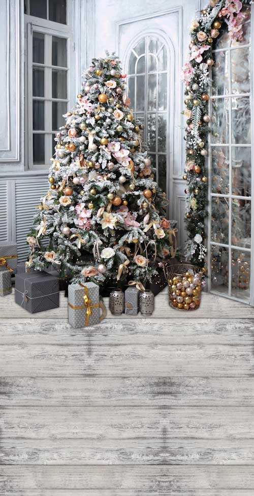 Świąteczne Tło Fotograficzne Zimowe Bożonarodzeniowe choinka prezenty