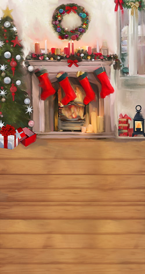 Świąteczne Tło Fotograficzne zimowa sceneria malowane choinka salon