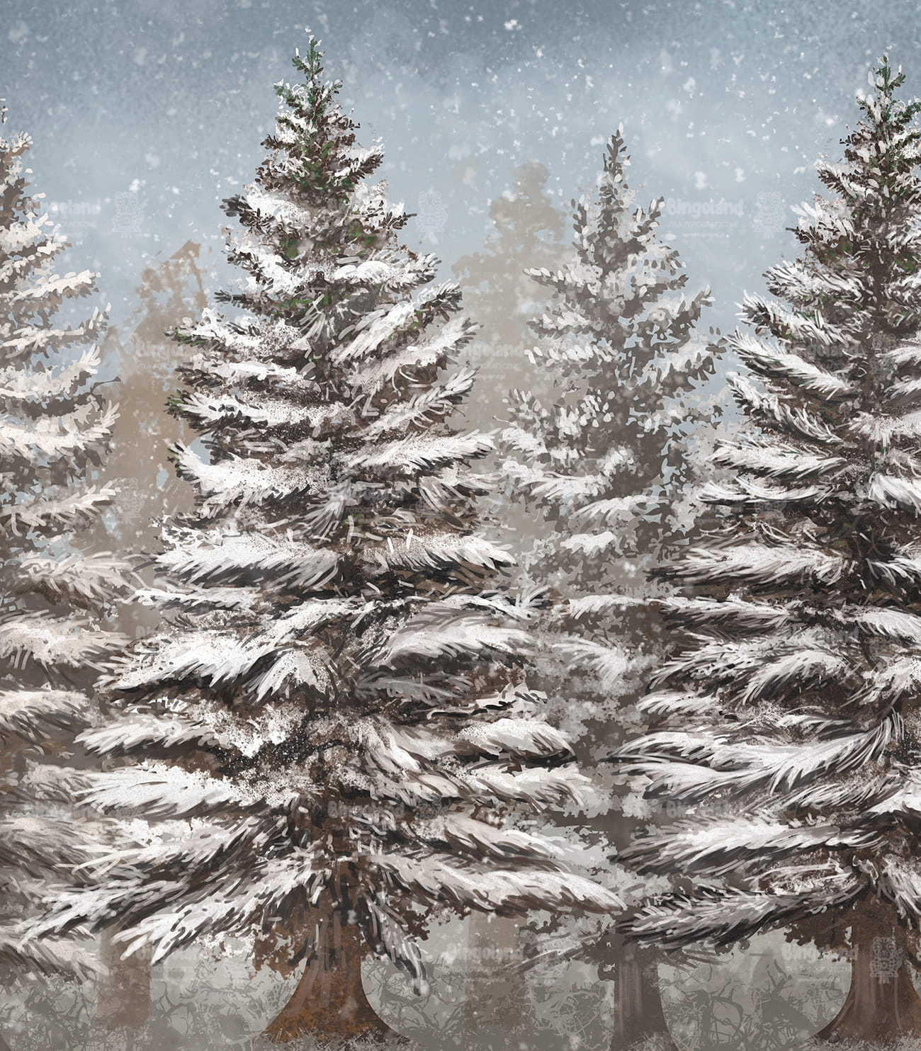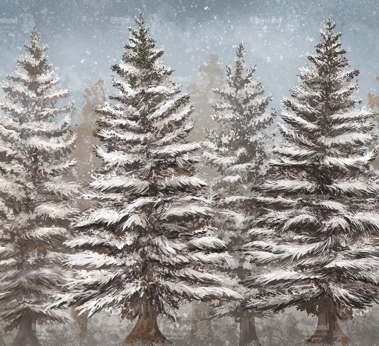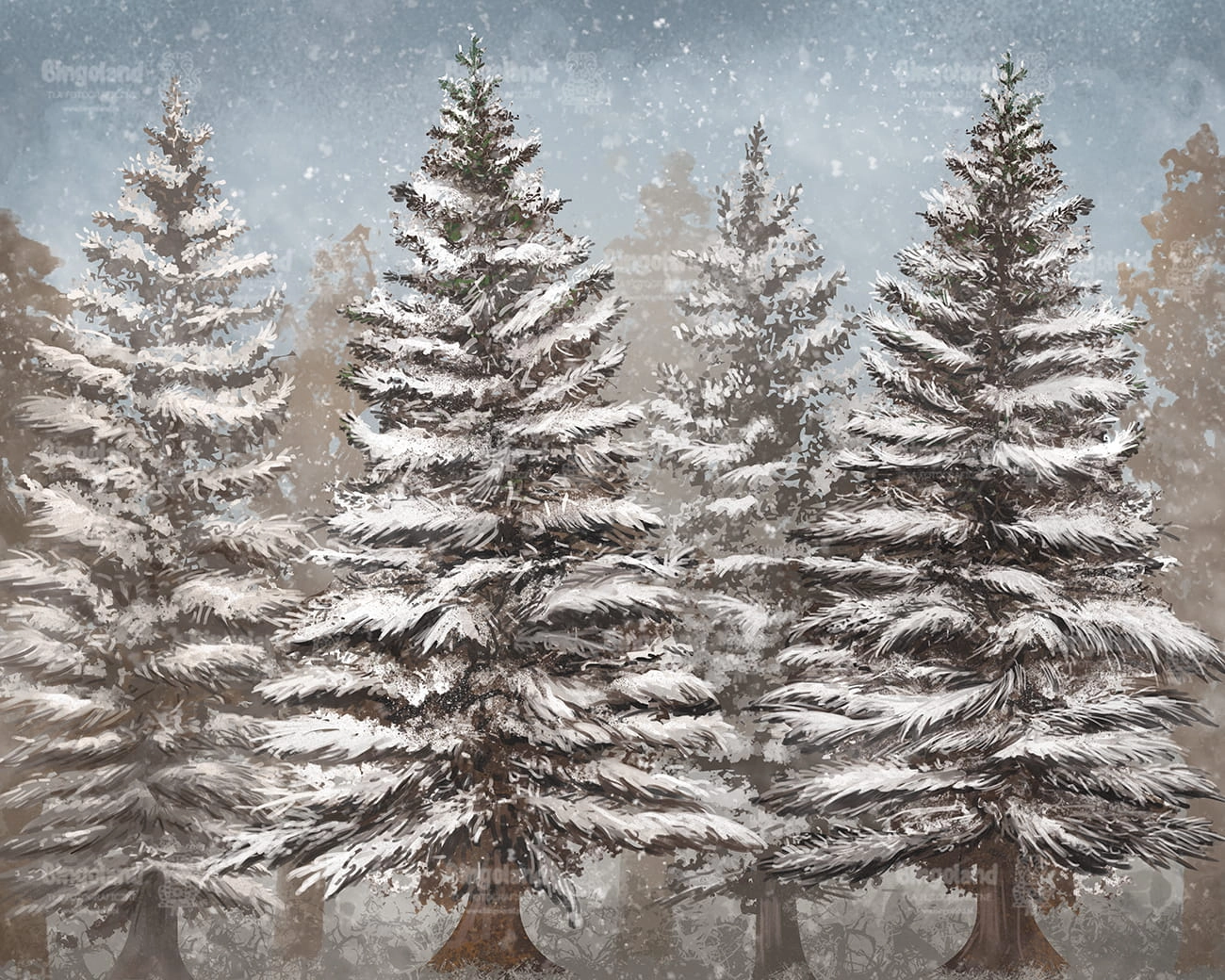 Tło fotograficzne Boże Narodzenie ,zima , las , drzewa , choinki , śnieg. Tło do zdjęć zimowych.